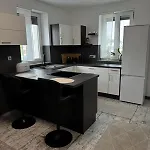 Eine voll ausgestattete Küche im Apartment bietet einen Herd und einen Geschirrspüler. Die Moderne Wohnung Bahnhof nähe liegt ganz nah an der Bushaltestelle Braunau/Inn Bahnhof.