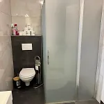 Genießen Sie den Komfort eines Badezimmers in der Unterkunft, das mit einem Haartrockner und Badelaken ausgestattet ist. Außerdem findet man hier eine begehbare Dusche und eine getrennte Toilette.